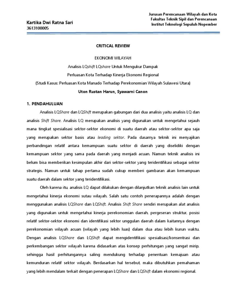 Berikut ini adalah contoh review untuk jurnal bertema ekonomi kota.
